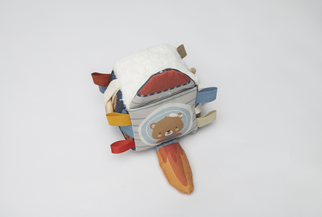 Cubo sensorial con diversas texturas, colores, sonido y distintos tipos de elementos de agarre y manipulación para esimular y explorar. Súper liviano en un tamaño ideal de 10x10cm para que tu bebé pueda manipularlo con facilidad.